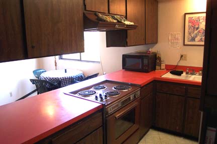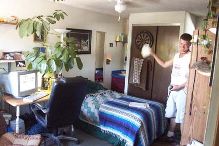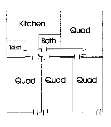 This is Solomon the friendly former resident on-site manager in his quad. Our building is uniquely done with lots of angles, not a square building like most. This means most of the quads are different sizes and shapes. |